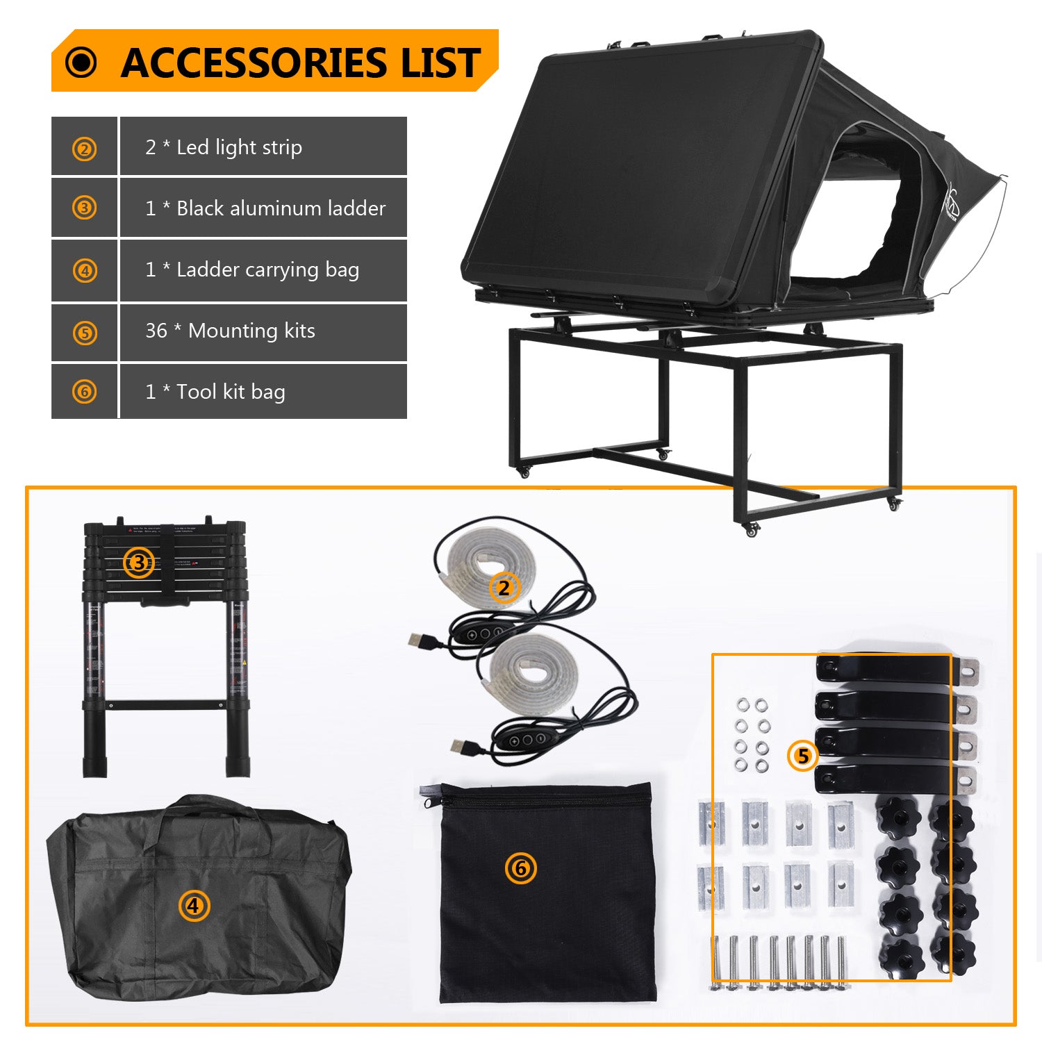 | ACCESSORIES | Curtain pole/install bag/Alu. Ladders/Crossbar | Curtain pole/install bag/Alu. Ladders/Crossbar |