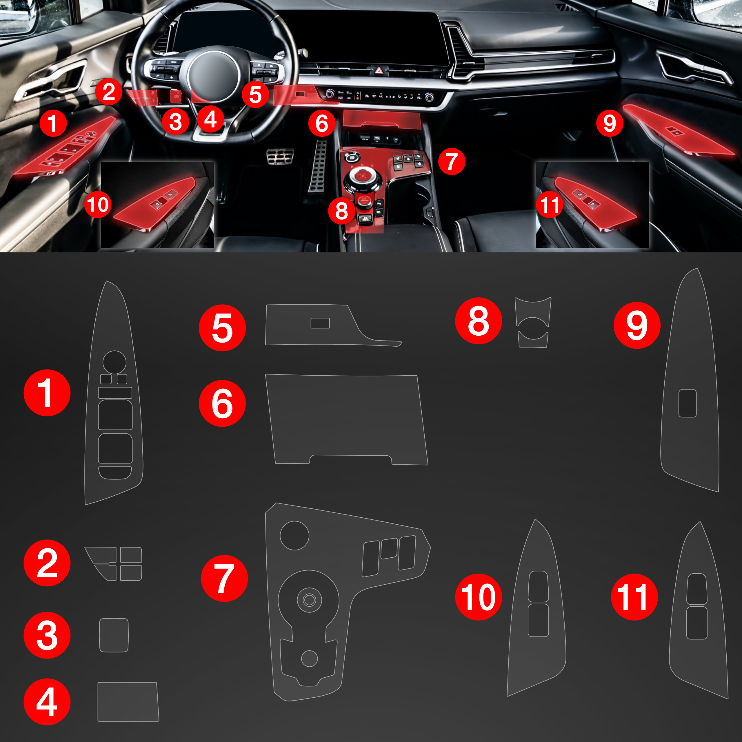 Lab Tested 11in1 Schutzfolien Für Mittelkonsole & Armaturenbrett - Kia Sportage 5 Hybrid Keyless (2021-2024) Matt Support Local [6on0sqg2]