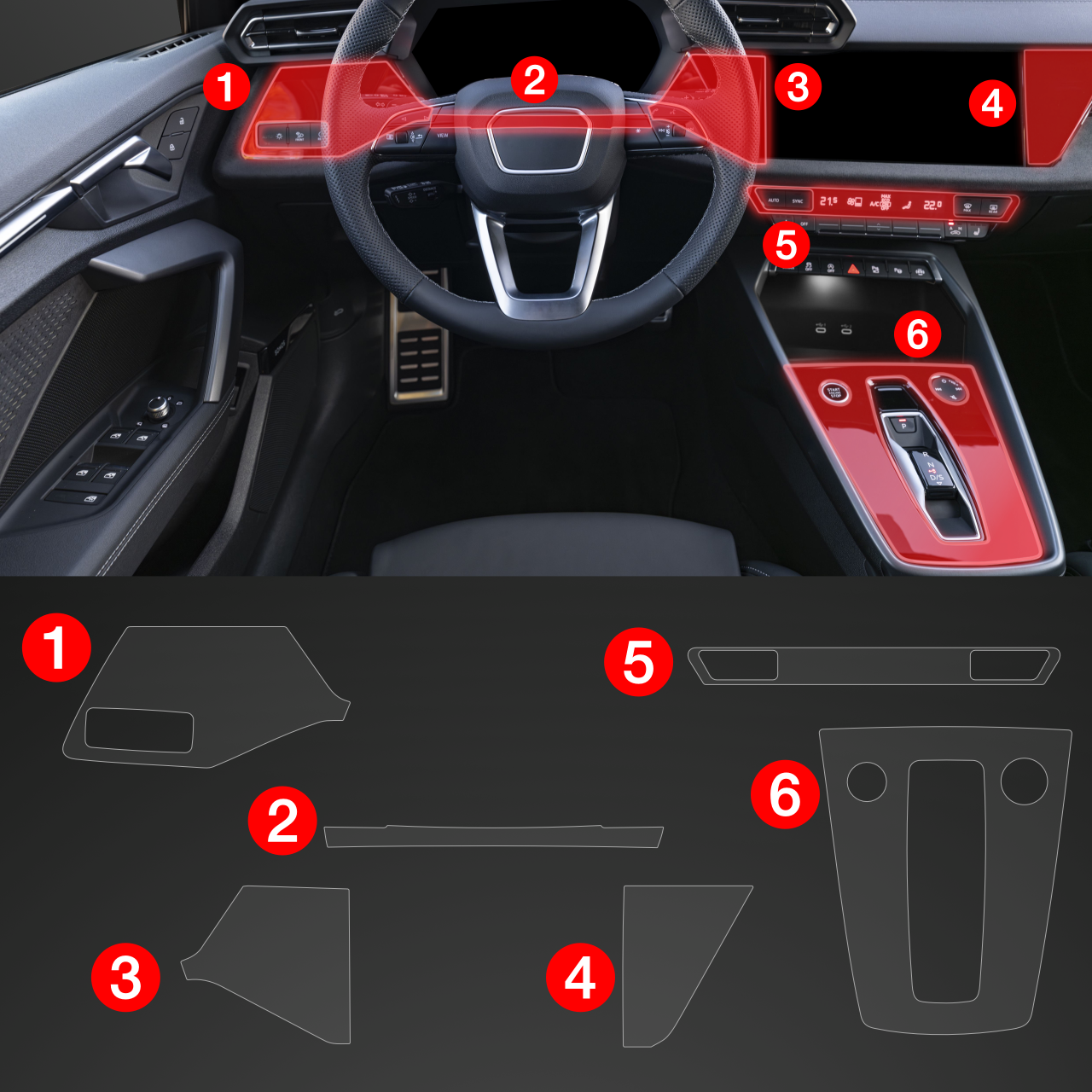 Trusted Brand 6in1 Schutzfolien Für Mittelkonsole & Armaturenbrett - Audi S3 8y (2020-2025) Glanz Dynamic Family Size [XlROTUfW]
