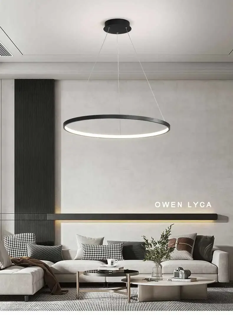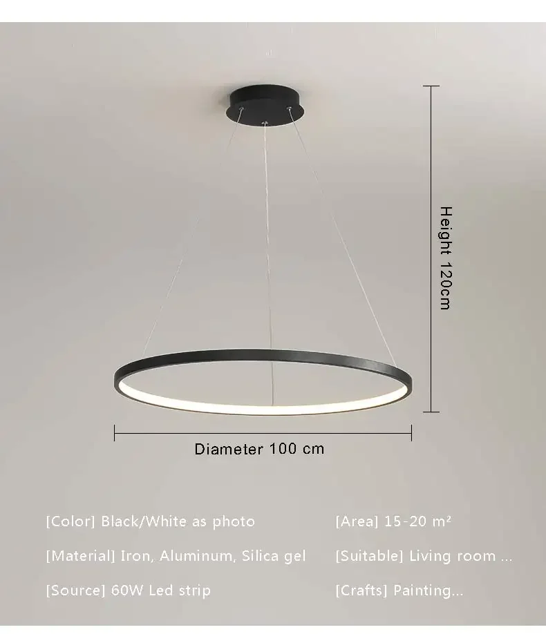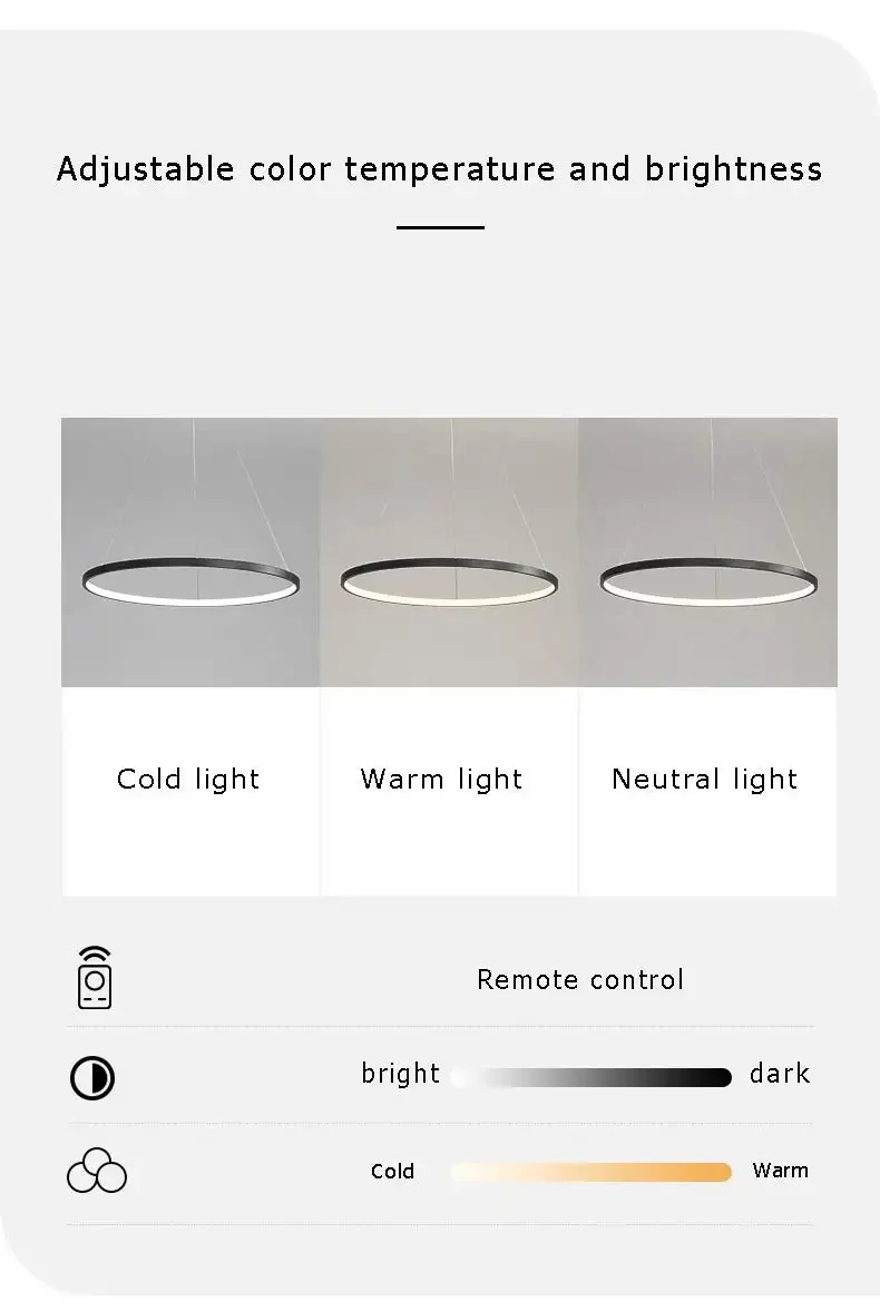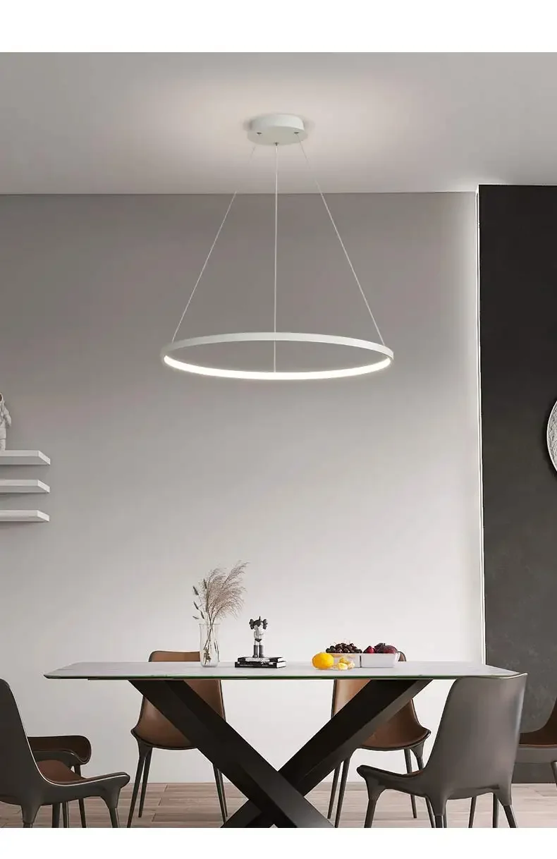 All-in-one Modern Minimalist Ring Led Pendant Light For Living Dining Room Kitchen Black Chandelier Home Decor Indoor Hanging Light Fixture Collection [p7CqYE8r]