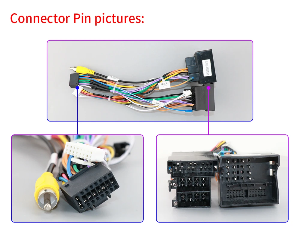 (Notice: if the connector pin to install with the car wires' cable is not the same as them which needs to contact the after-sale service to order special wire for installing)
