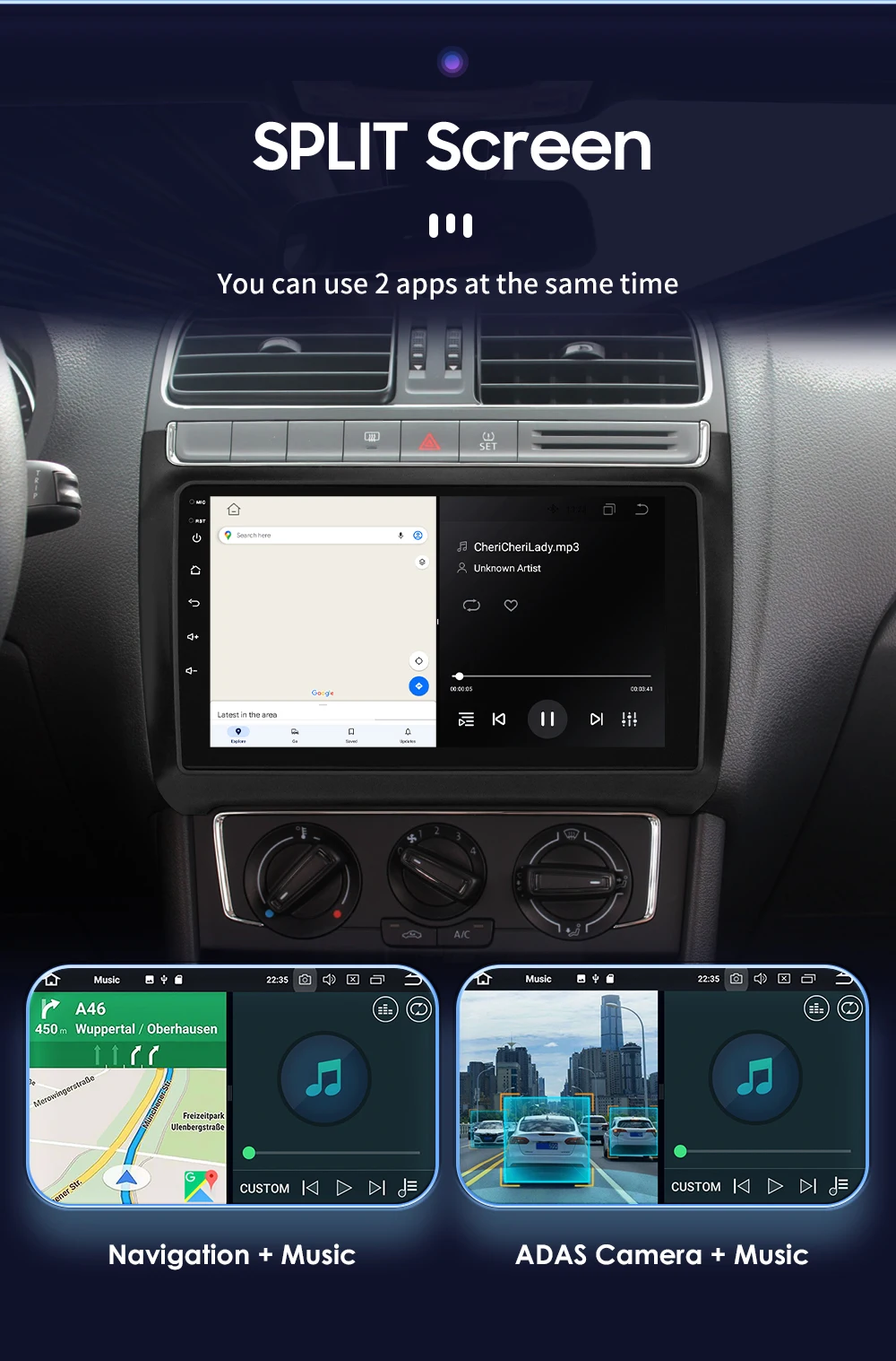 Split Screen : You can use 2 apps at the same time (such as: Navigation + Music , ADAS Camera + Music ,etc.)