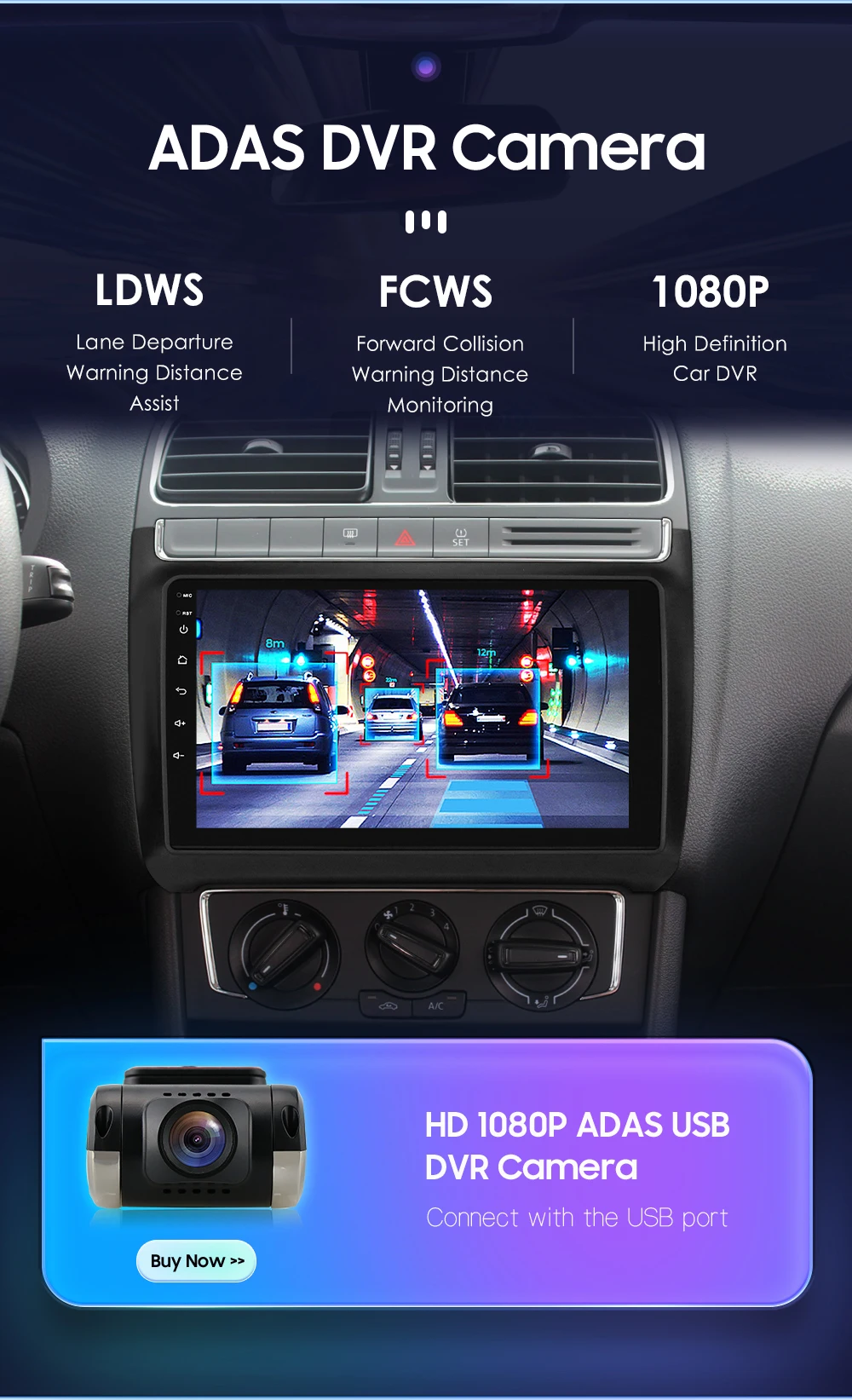 HD 1080P ADAS DVR Camera(Needs to order separately) --connect with the USB port: LDWS(Lane Departure Warning Distance),FCWS(Forward Collision Warning Distance), 1080P(High Definition Car DVR).