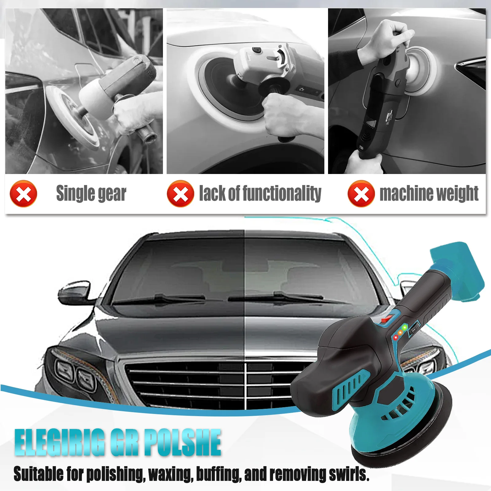 【Cordless Portable Polisher】Without the long messy wire to limit, the car polisher buffer allows you to use both indoor and outdoor with higher flexibility.