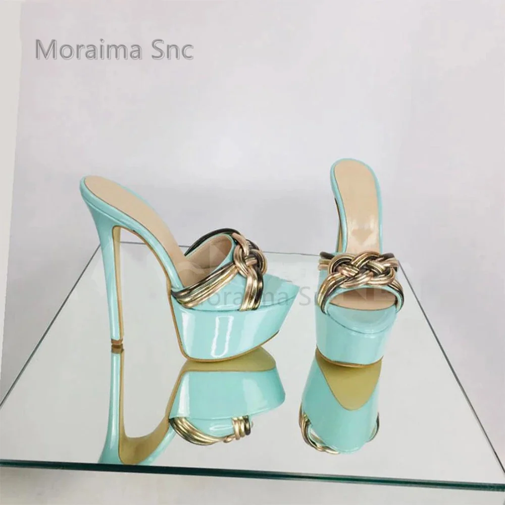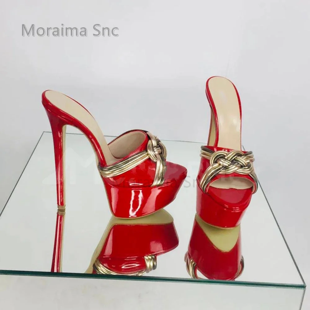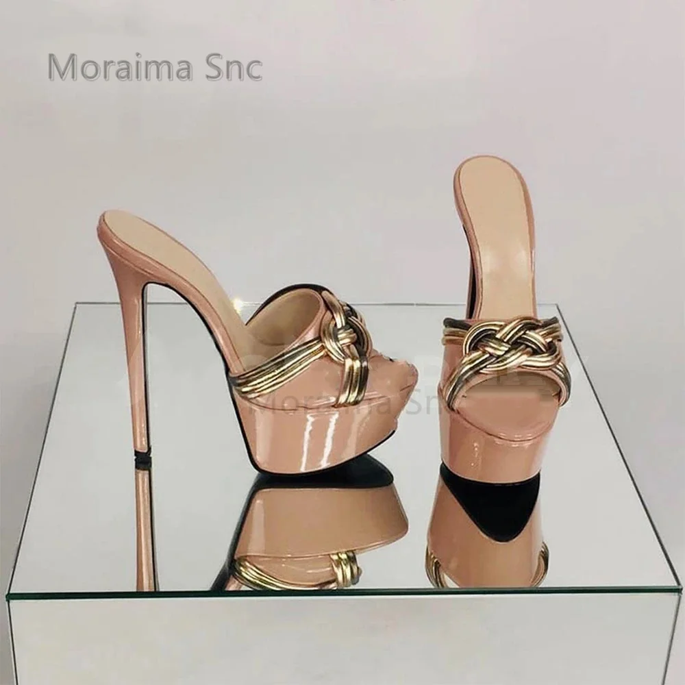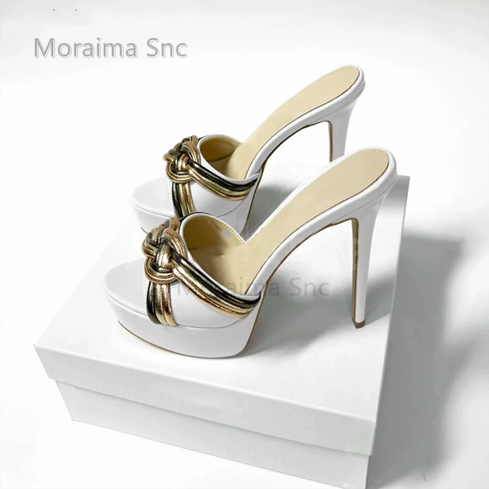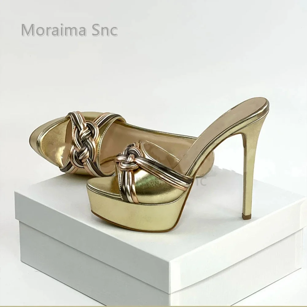 Ultimate Metallic Knot Platform Stiletto Mules Slippers For Women Multicolor Leather High Heels Fashion Summer Shoes Large Size Sandals With A 60% Price Cut [ao2udp6w]